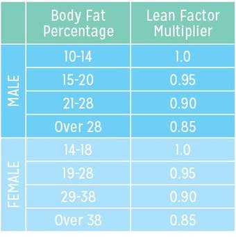 leanfactor <- 0.9 #lean factor that correspond to the gender and its respective BMI (see table), here 0.9